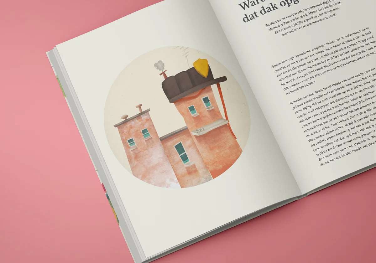 "In 't Wilde Weg" means "In the Wild Way". The book is a short story compilation of 15 travelers who tell their most crazy travel adventures. The book was written by two travelers that wanted to inspire us to travel more. To make the book more fun, they asked me to create a set of illustrations that summarises each story.